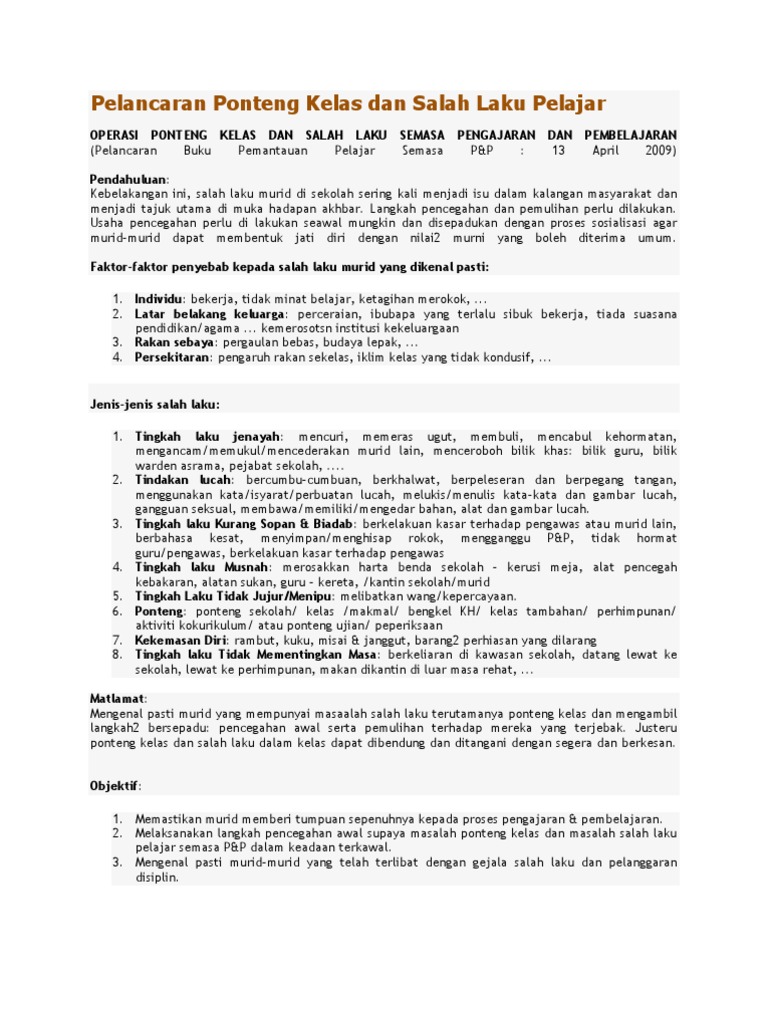 Pelancaran Ponteng Kelas Dan Salah Laku Pelajar Pdf